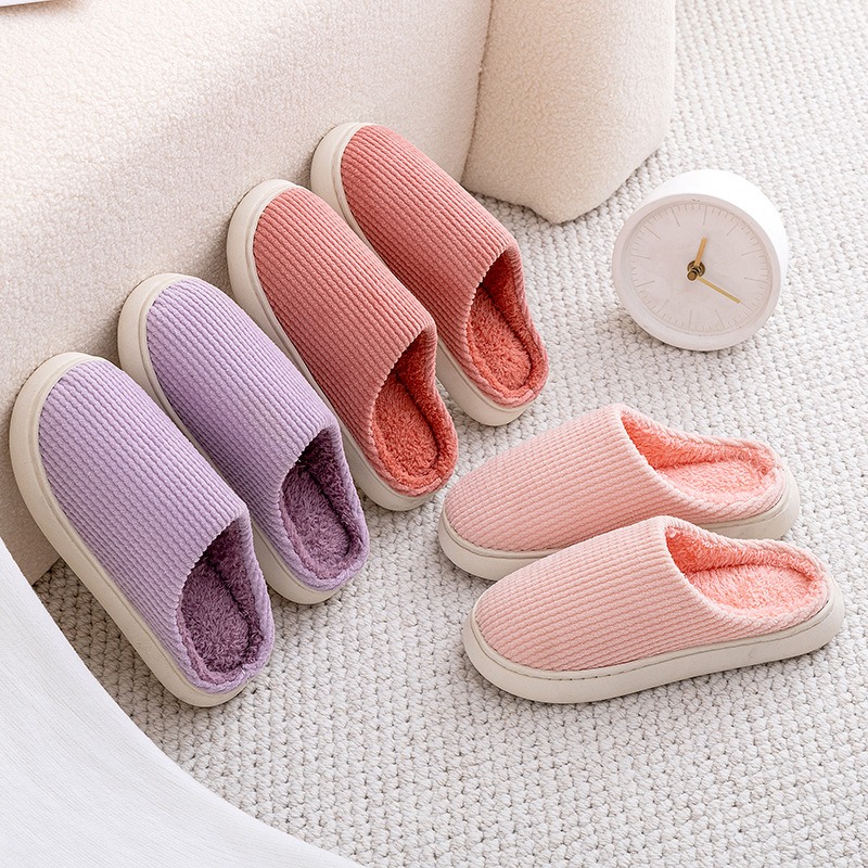 여성 남성 스커프 슬리퍼 코듀로이 따뜻하고 편안하며 미끄럼 방지 침실 실내 슬립온 하우스 슈즈(인조 양털 안감 포함)