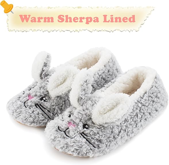 부드럽고 힘든 : 두꺼운 플러시 안감을 가진 여성을위한 귀여운 슬리퍼 양말은 발을 껴안고 토스트 워마 플러스 쿠션 폼 밑창을 제공하여 베개 구름을 걷는 것처럼 느껴집니다. 비 스키드 밑창을 가진 여성을위한 따뜻한 슬리퍼는 나무 나 타일 바닥에 안전을 착용하십시오. 하루가 끝날 때 직장에서 집으로 돌아 오면 여성을위한이 괜찮은 그립 아늑한 슬리퍼는 피곤한 발을 이완시키는 데 좋습니다. 멋진 카와이 하우스 슈즈가 있는지 확인하십시오.