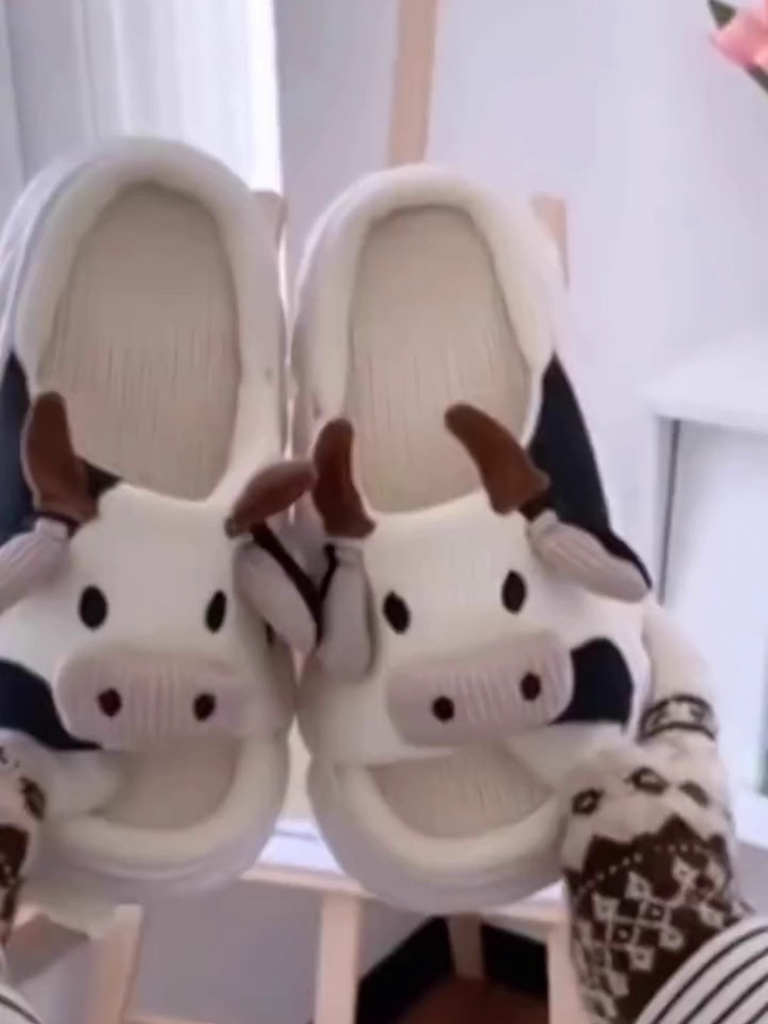 귀여운 여성 카와이 푹신한 여름 리넨 플랫폼 동물 암소 슬리퍼 만화 우유 하우스 슬리퍼 재미 있은 신발