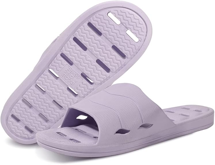 업그레이드 디자인 : 고도로 탄력적이고 소프트 업그레이드 된 EVA 재료로 만든 샤워 신발은 걷기시 발을 문지르지 않고 부드러운 밑창이 쿠션을 제공하면 발을 편안하게 느끼게하고 피로를 줄입니다. 상단과 밑창은 빠른 건조와 통기성을 위해 배수 구멍으로 설계되어 샤워 후 발을 빨리 건조하게 유지할 수 있습니다.