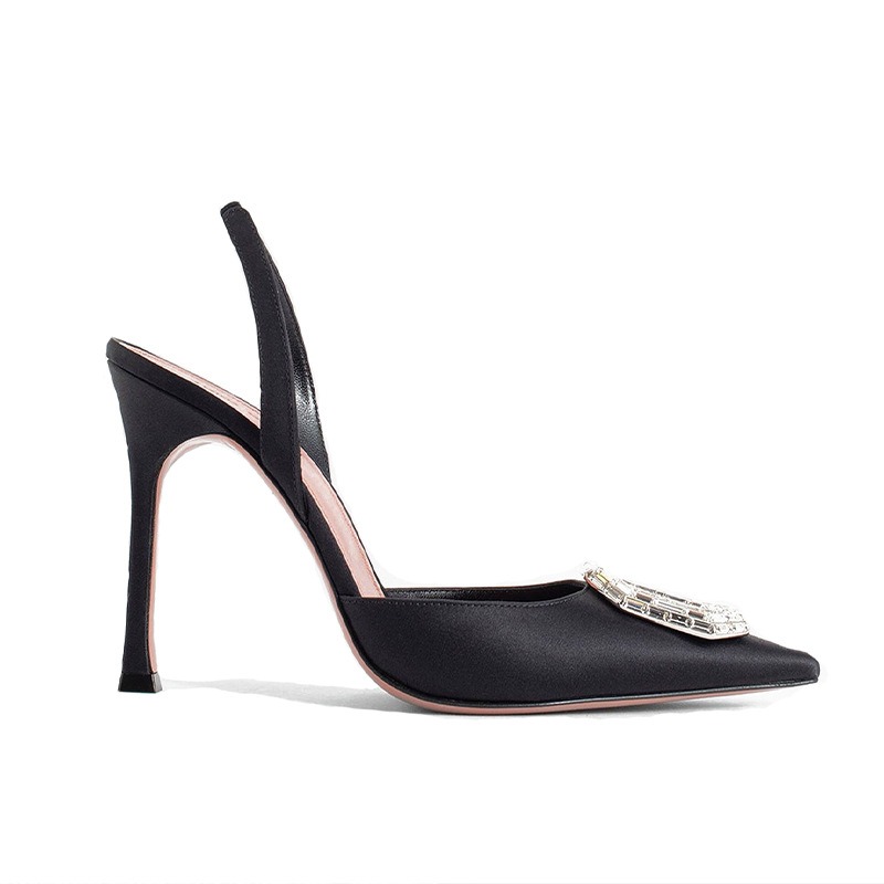 여름 라인 석 굽 슬링 백 펌프 여성 우아한 지적 발가락 발 뒤꿈치 사무실 레이디 스틸레토 신발