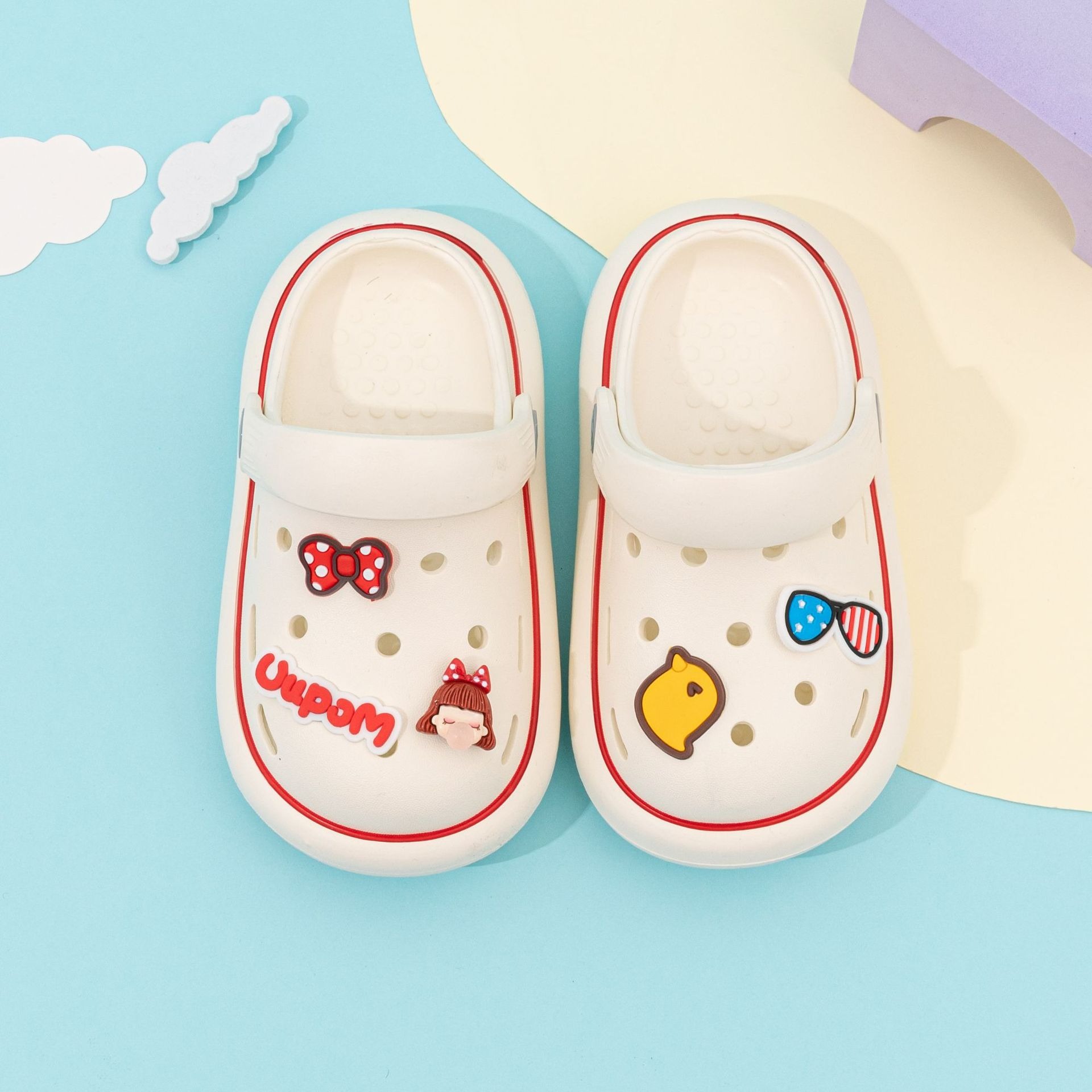 사랑스러운 만화 활 미끄럼 방지 부드러운 어린이 정원 발 착용 슬리퍼 여름을위한 어린이 나막신 신발