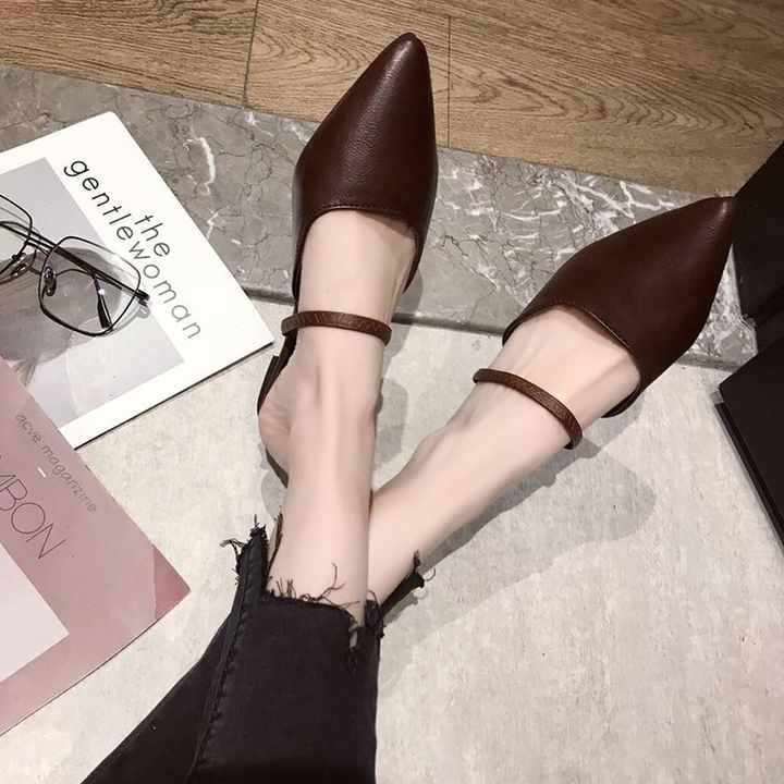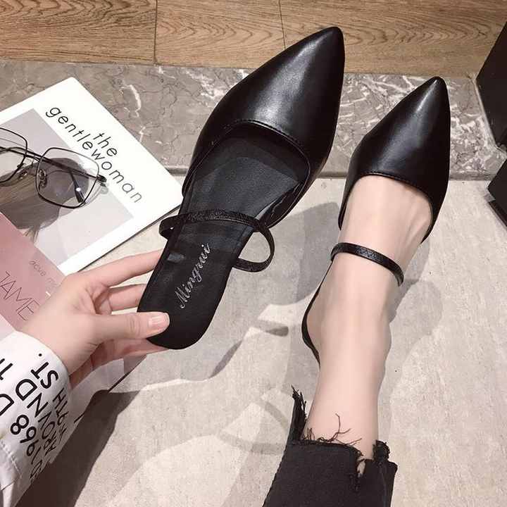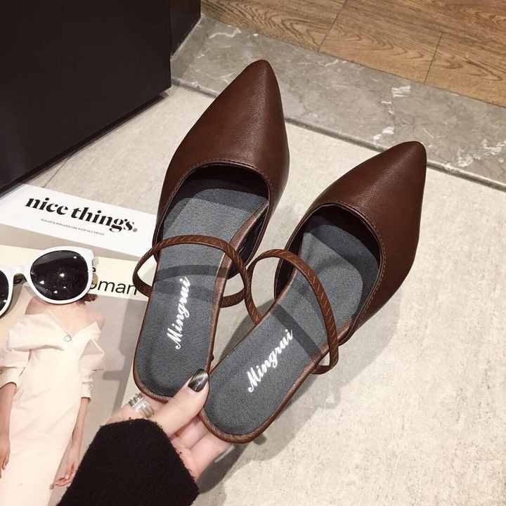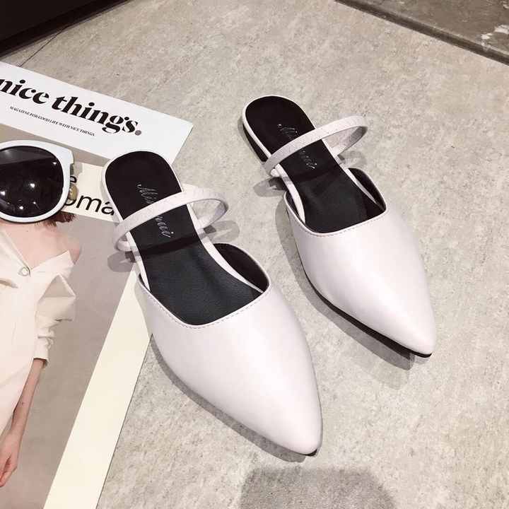 섬세한 가죽 샌들 여성 지적 발가락 슬리퍼 플랫 로우 힐 뮬 여성 캐주얼 슬라이드