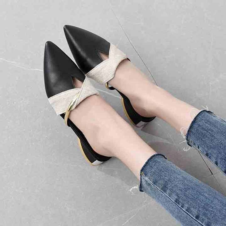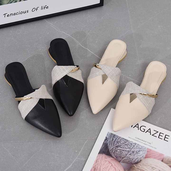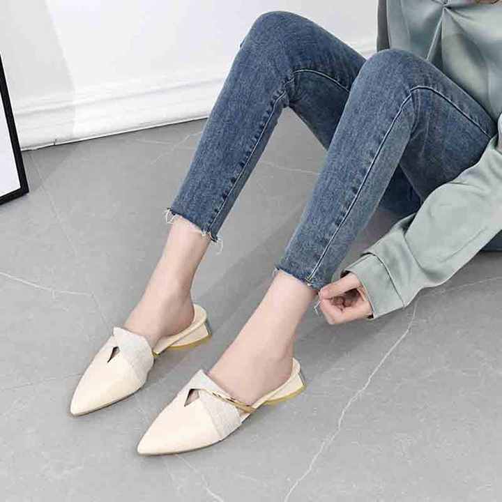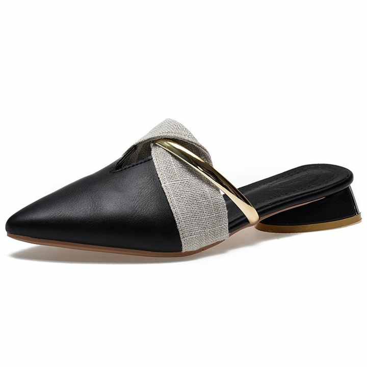 섹시한 지적 발가락 여성 슬리퍼 슬립 숙녀 뮬 낮은 굽 여성 PU 가죽 펌프 여름 캐주얼 슬라이드 여성