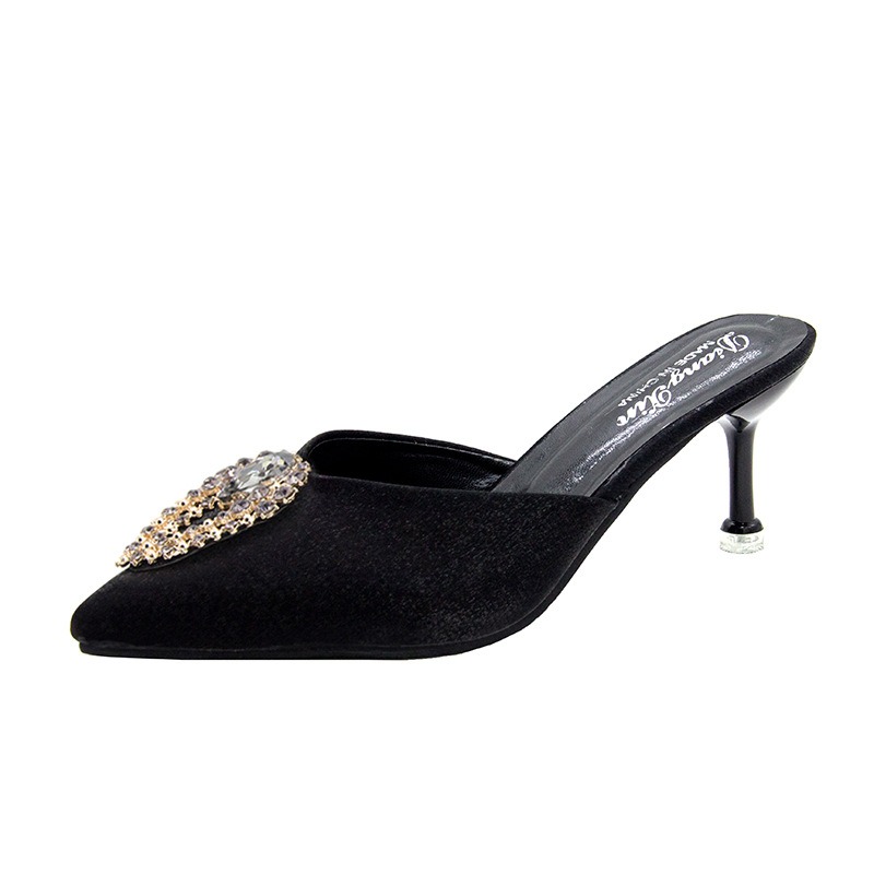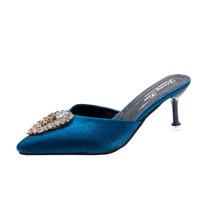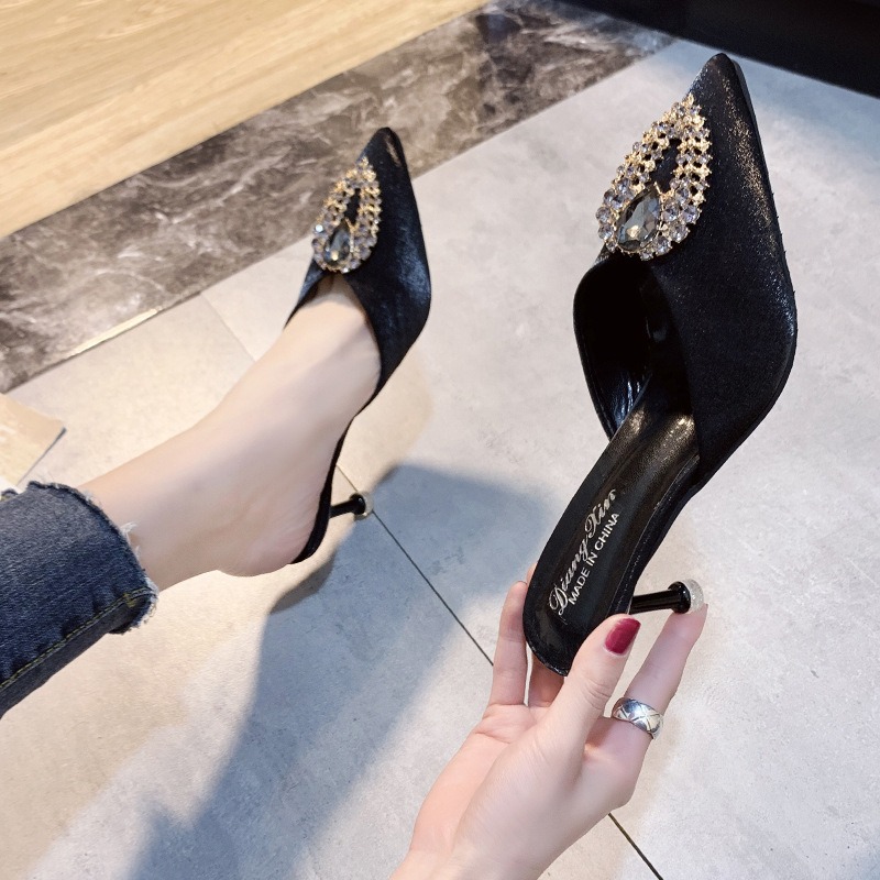 저렴한 여성 신발 여름 지적 발가락 반 슬리퍼 레이디스 스틸레토 미드 힐 샌들