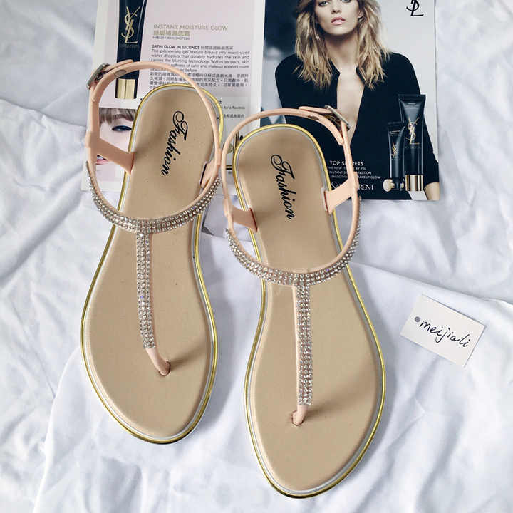 여름 라인 석 플랫 샌들 캐주얼 신발 여성을위한 섹시한 플립 플롭 숙녀 신발