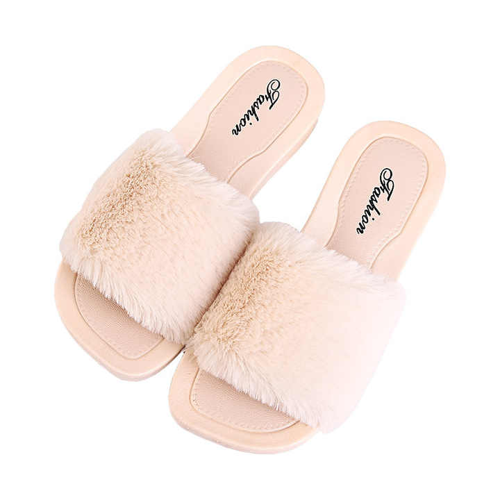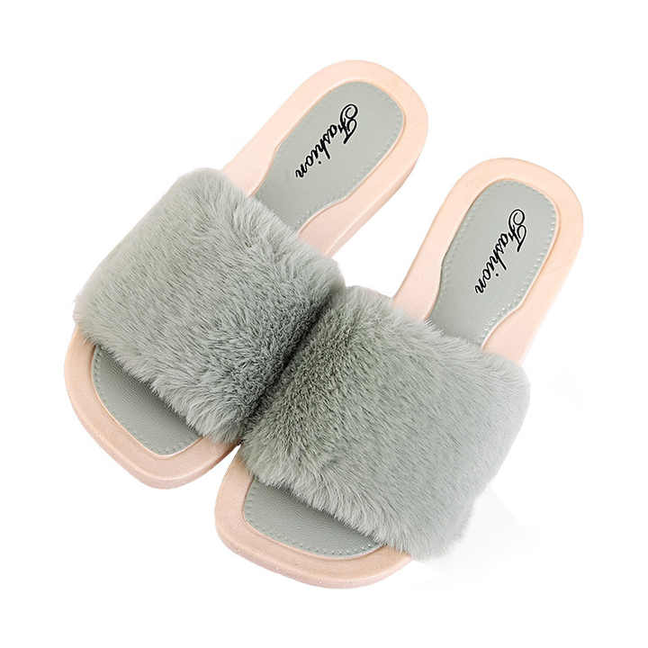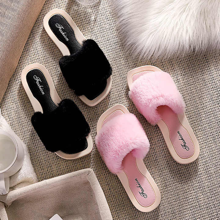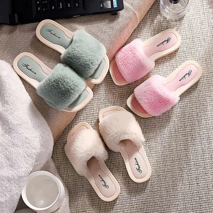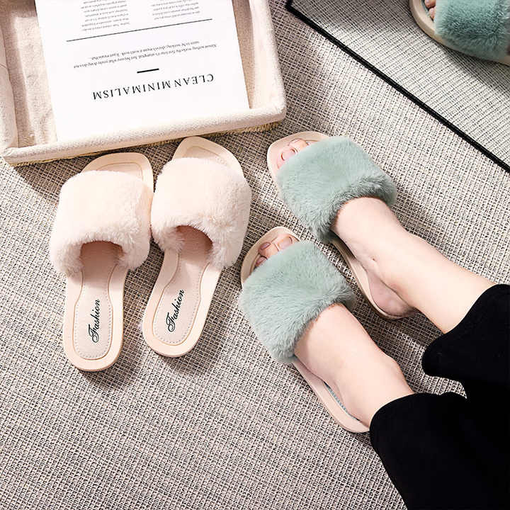 여성용 하우스 슬리퍼 면 따뜻한 모피 슬리퍼 플랫 슈즈