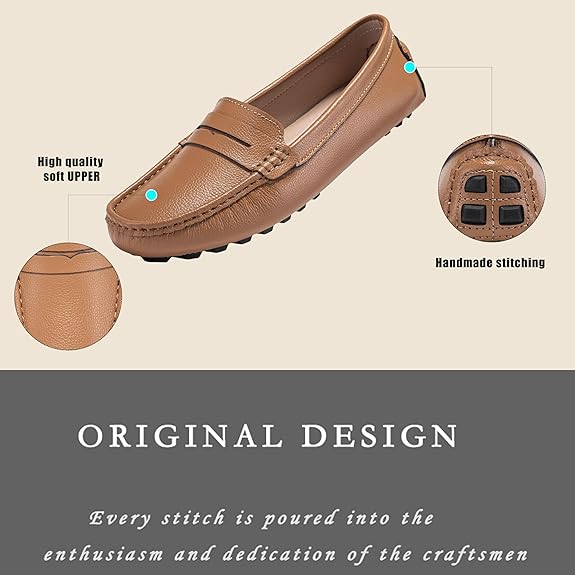 여성을위한 부드러운 가죽 드라이빙 모카신 - 캐주얼 페니 로퍼 컴포트