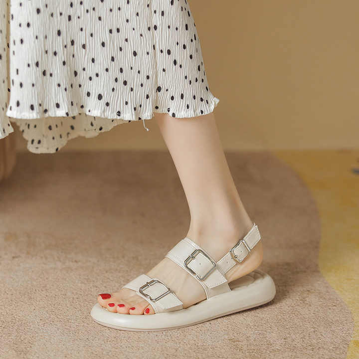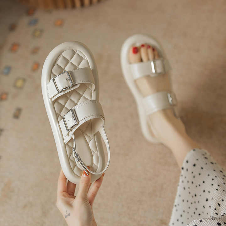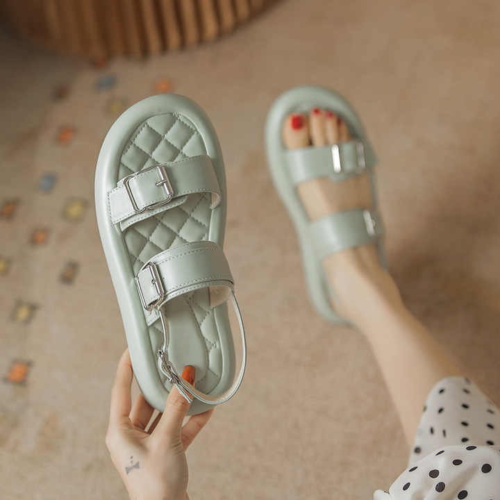 두 개의 넓은 스트랩과 이중 버클은 발에 맞게 너비와 견고함을 조절할 수 있습니다.