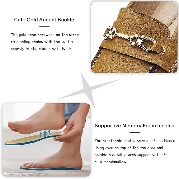 【귀여운 골드 악센트 버클】 : 미묘한 반짝이는 삽입물로 체인을 닮은 스트랩의 골드 톤 하드웨어는 그 날에 입는 모든 것, 클래식하면서도 세련된 것과 대조됩니다. 그들은 금 버클 장식과 슬림하고 정교한 모양, 우아하지만 내구성이 뛰어나서 로퍼에 스타일을 더합니다. 발가락을 가로 지르는 장식 악센트는 우아하며 신발을 조금 입습니다. 멋지게 바느질. 스티칭은 사랑스럽고 강하고 균일하며 잘 완성됩니다.