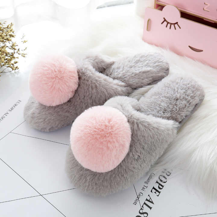 여성 겨울 슬리퍼 신발 슬라이드 봉제 공 홈 슬리퍼 숙녀 실내 집 따뜻한 모피