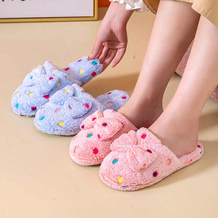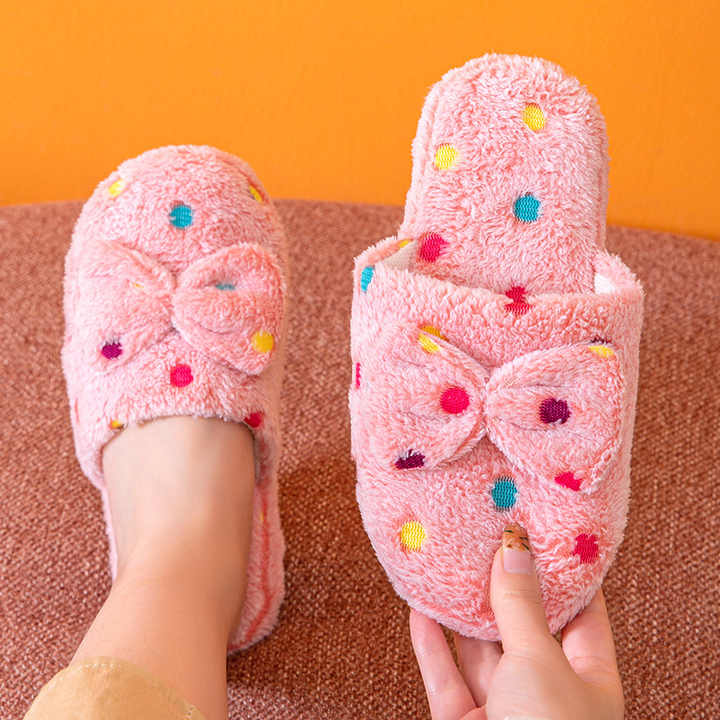여성 따뜻한 플러시 홈 슬리퍼 안티 슬립 가을 겨울 신발 실내 집 바닥 침실 용 부드러운 침묵 슬라이드