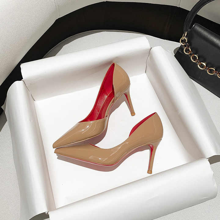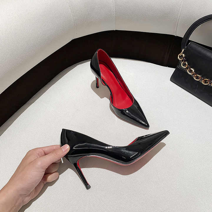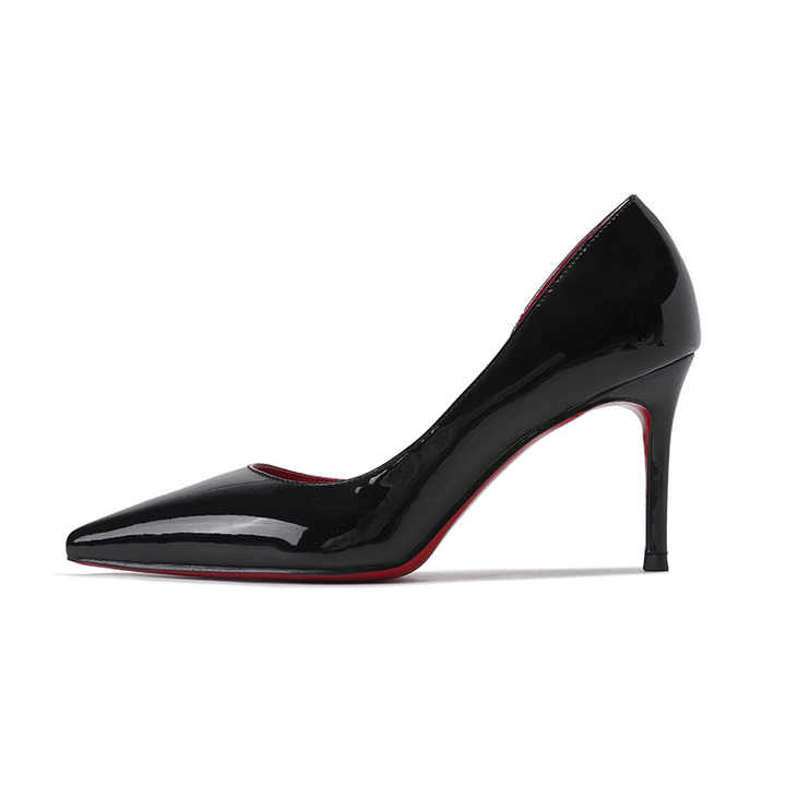 여성 드레스 펌프 섹시한 흑인 여성 하이힐 신발 우아한 파티 가죽 지적 발가락 럭셔리