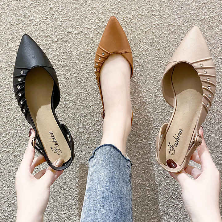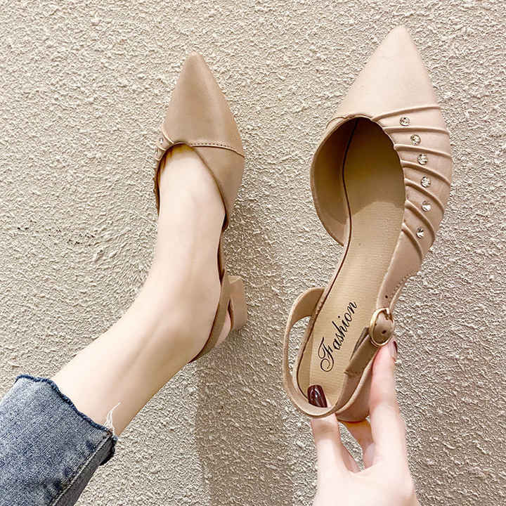 여름 라인 석 굽 슬링 백 펌프 여성 우아한 지적 발가락 발 뒤꿈치 사무실 레이디 스틸레토 신발