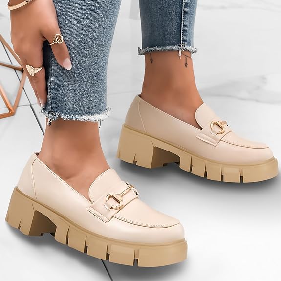 여성을위한 귀여운 페니 로퍼 사무실, 비즈니스 공식, 드레스 스타일 및 학교 유니폼을위한 소송. 신발 컬렉션에 세련된 추가.