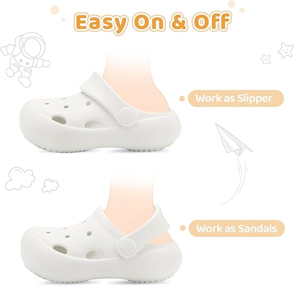 다목적 실내/실외 사용 :이 어린이 신발과 함께 샤워에서 정원으로 원활하게 전환! 스트랩이 고정 된 샌들 또는 빠른 켜기를 위해 슬라이드로 착용하십시오. 두꺼운 쿠션 밑창은 실내에서 연주하거나 바위 같은 해변 트레일을 탐험하든 아치 지원을 제공합니다.