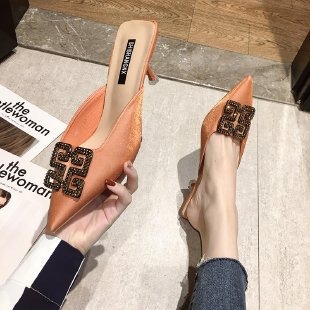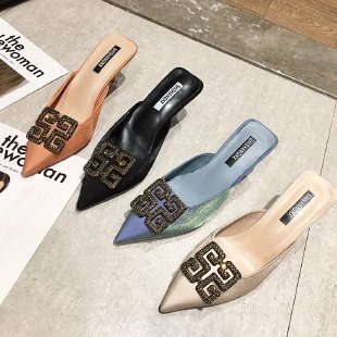 저렴한 여성 신발 여름 지적 발가락 반 슬리퍼 레이디스 스틸레토 미드 힐 샌들