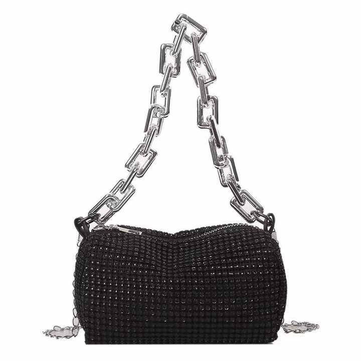 휴대용 패션 여성 크로스바디 백 밝은 다이아몬드 금속 체인 PU 디너 파티